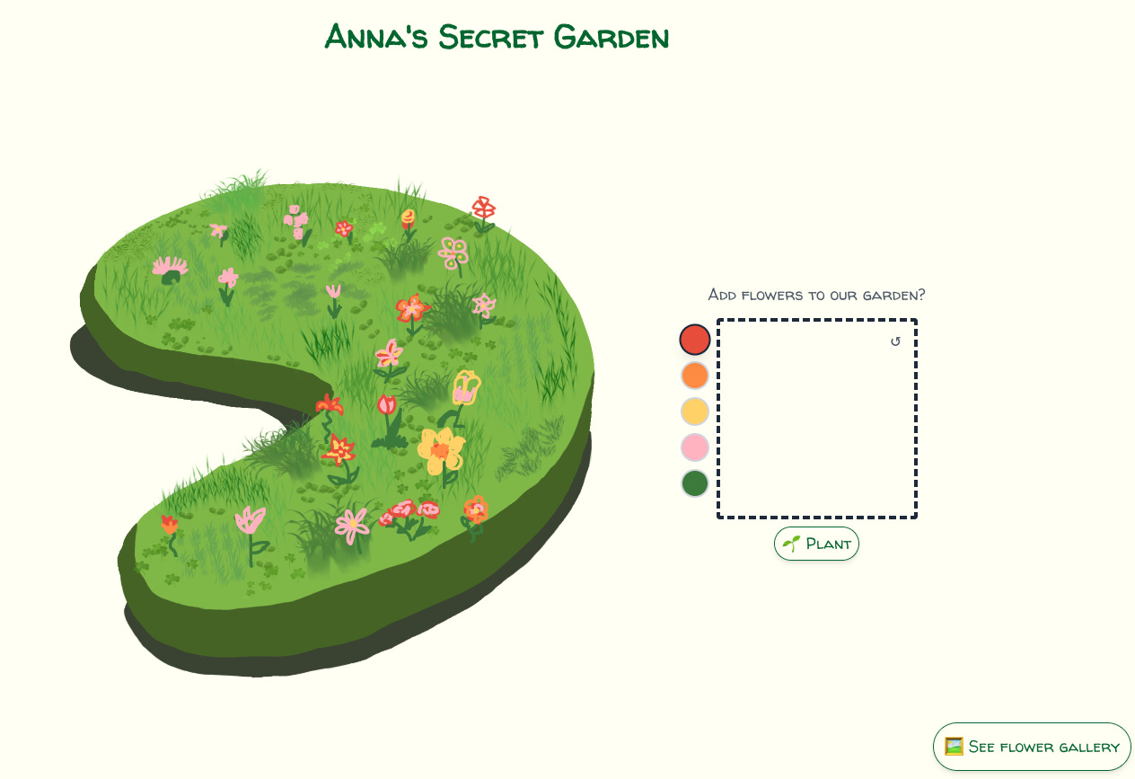 Anna made a collaborative digital garden that anyone on the internet can add flowers to (but they have to be flowers!)