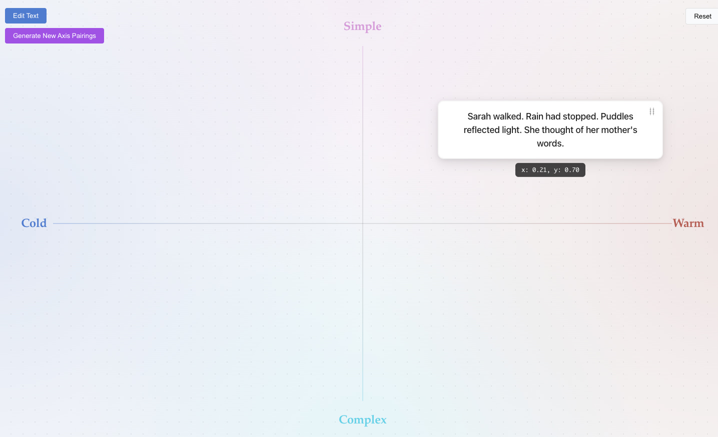 Mathurah demoed Figma for words, a spatial canvas that transforms a sentence across an axis to adjust tone, complexity, and emotional resonance